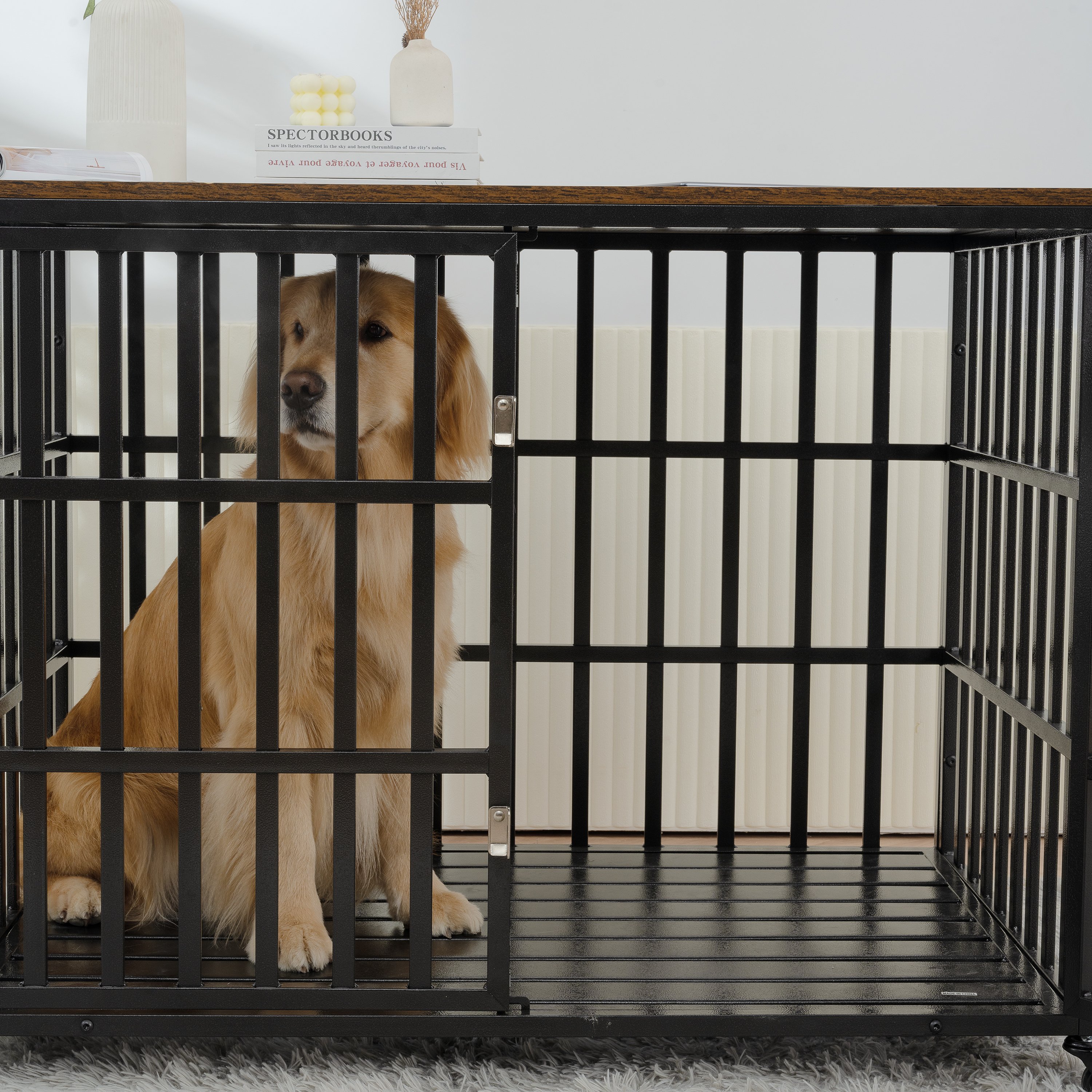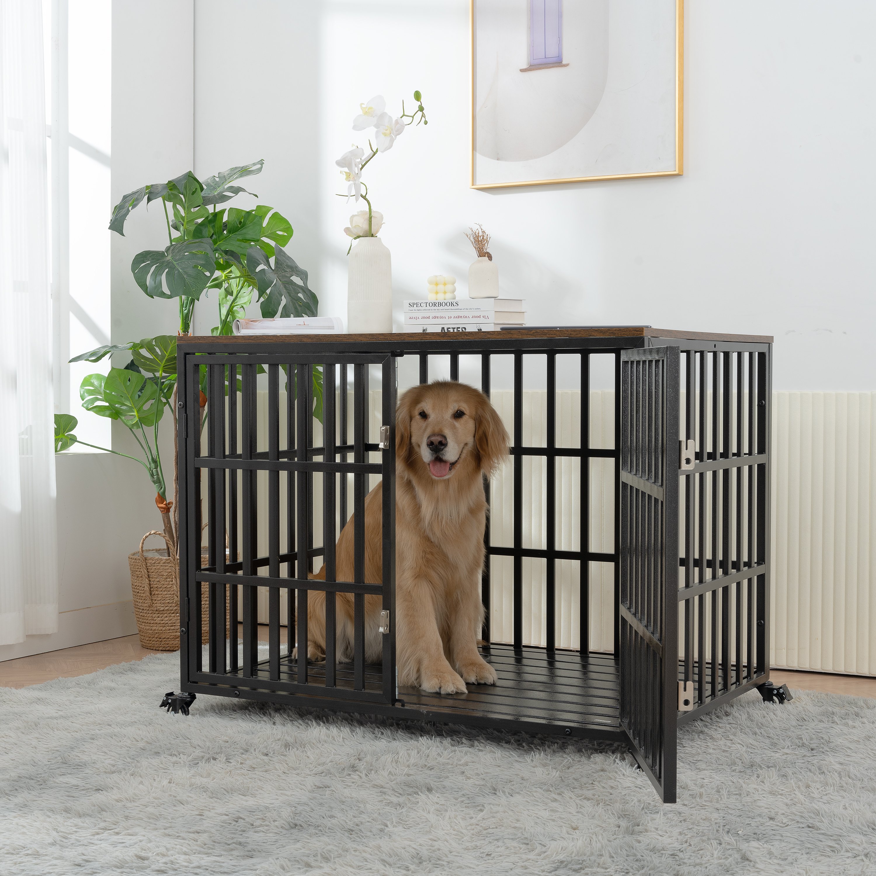 Home > 42" Heavy Duty Dog Crate for Large Medium Dogs, Furniture Style cage with 4 Lockable Wheels and 2 Locks, Decorative Pet House Wooden Cage Kennel Furni