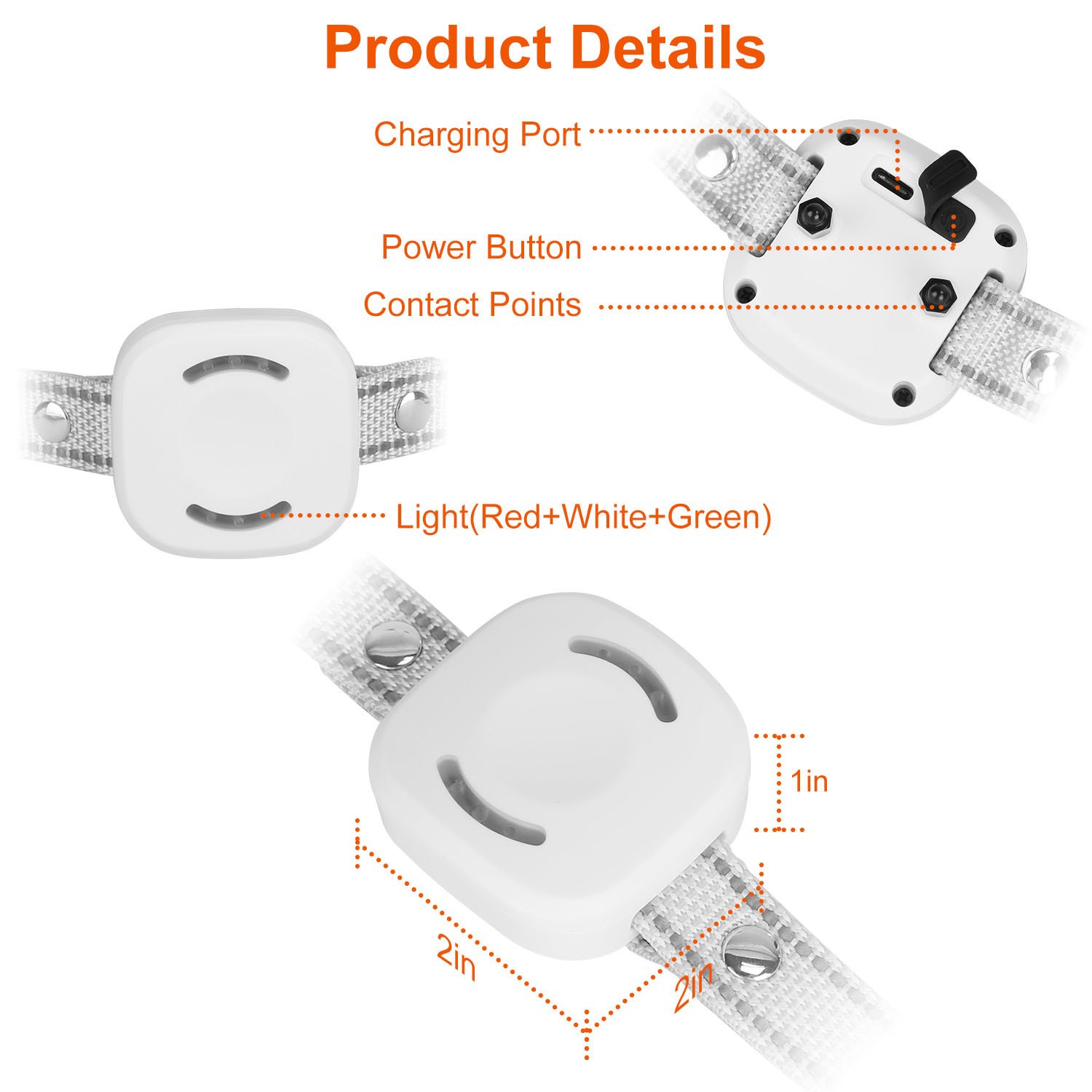 *2 Lighting Modes*:Equipped with lights of red,white and green,the receiver features 2 light modes(Steady on/Flashing),which provides much conevenience when you need to find your naughty dog during night walking. Ensures your beloved dog’s safety.